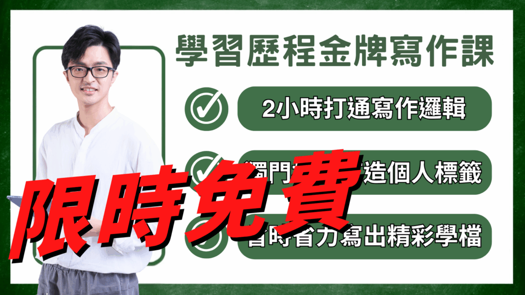 ☝️這是我做過最瘋狂的決定🎁全套線上課程免費送 免費領取「學習歷程金牌寫作課」步驟點選圖片進入課程連結加入購物車輸入折價券:47雲端輔導室確認課程變成0元輸入正確基本資料(尤其是email)點選付款(因為是免費,所以不會讓你支付任何費用,只是系統就是這樣設計)完成後馬上就可以開通課程之後你也會收到我的課程使用信件,可能在垃圾桶。(請把我加入聯絡人)不會的話,可以來信或私訊詢問👇 金牌學員回饋 其他學長姐經驗分享(點開YouTube)